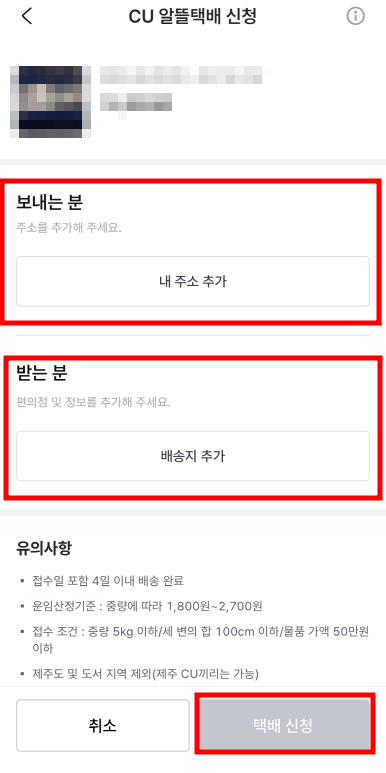 2) [CU 알뜰택배 접수] 클릭