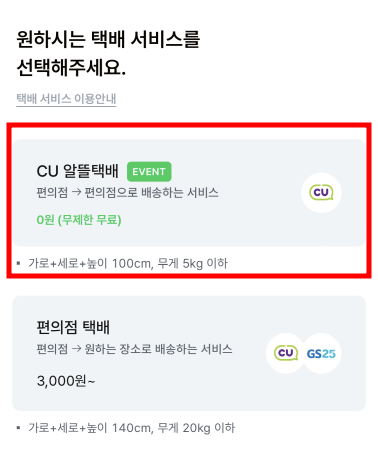 3. 'CU 알뜰 택배' 클릭