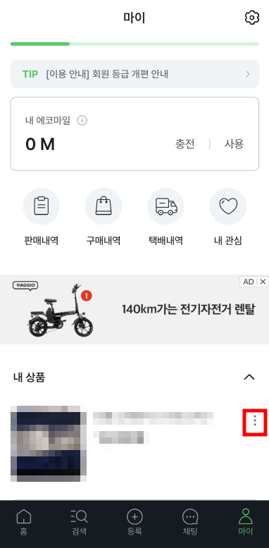 2. 내 상품 옆 '점 3개' 클릭
