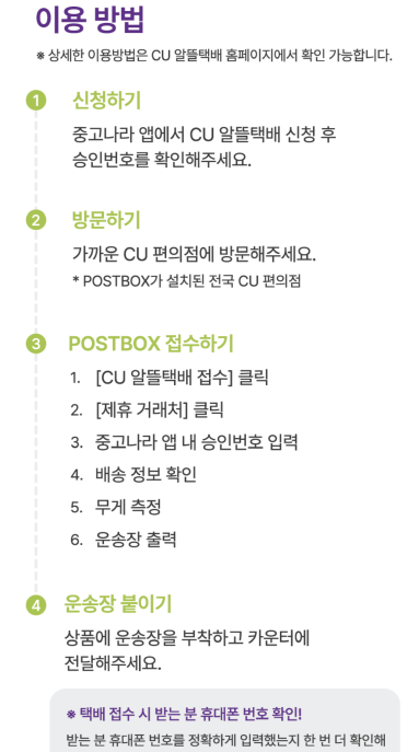 이를 아주 쉽게 요약하면 상품 등록 -> 상품 보내기 -> 핀 발급 -> 지정된 CU에 가서 접수