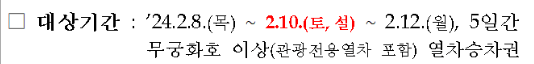 - 2024 설날 대상 날짜 : 2월 8일(목) ~ 2월 12일 (월)