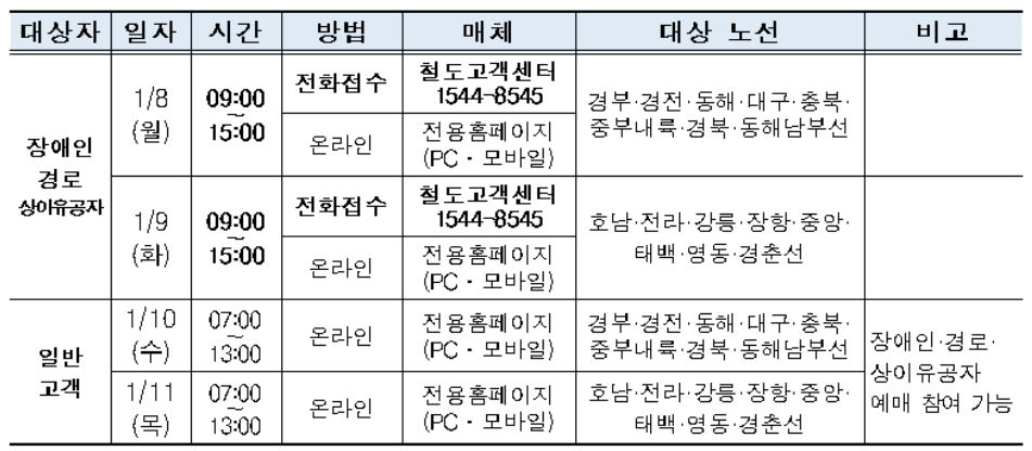 설날 KTX 열차표 예매 기간